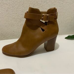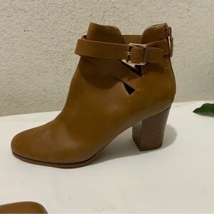 Cole Haan Women's Brown Leather Ankle Booties Boots Buckle Zipper Heels 10B