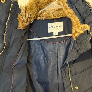 Cole Haan Women's Dark Puffer Jacket with Fur Trim