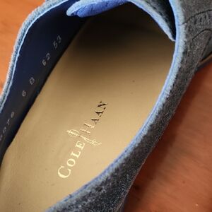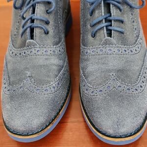 Elegant denim blue leather Derbys by Cole Haan. Perfect blend of style and comfort.