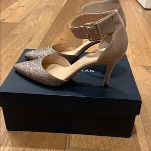 Great condition, Cole Haan Solange Pump women's heels. Featuring a stunning glitter design and a secure ankle strap. Worn once and no longer needed. Size 9.