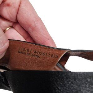 The allure of these Cole Haan wedges lies in their sophisticated blend of black leather and exotic snakeskin accents. The adjustable buckle ensures a secure fit, while the wedge heel offers both height and comfort. The luxurious materials and classic design make these sandals a timeless addition to any wardrobe.