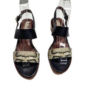 Cole Haan Womens Leather & Snakeskin Wedge Sandals Size 6.5B