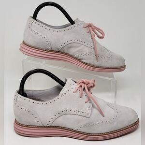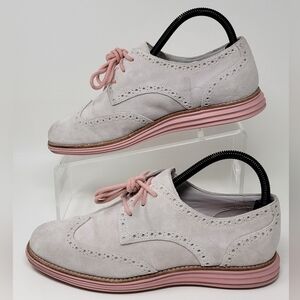 Cole Haan Women's Lunargrand Wing Tip Oxford Gray Suede Purple Size 7.5 Preowned
