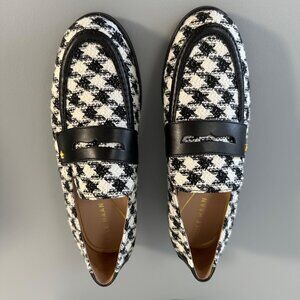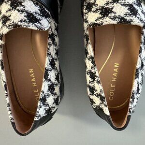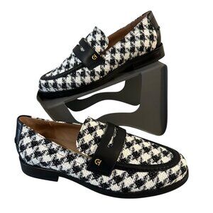 Cole Haan Womens Lux Pinch Penny Loafer Size 7.5B Houndstooth Black White Preppy