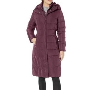 Cole Haan Womens M Knee Length Hooded Taffeta Quilted Down Coat Hooded Jacket