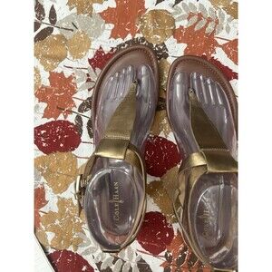 Cole Haan Women's Micro-Wedge Gold Leather Thong Sandals Size 7.5 Resort Comfort