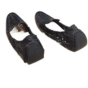 Cole Haan Women's Sadie Huarache Black Leather Flats, Size 11, New w-box