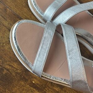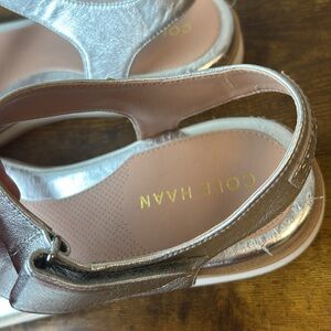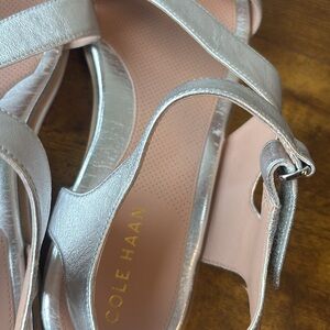 Step out in style with these elegant silver sandals from Cole Haan. Perfect for any occasion, these shoes offer both comfort and sophistication.