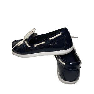 Cole Haan Womens Size 6B Navy Patent Leather Nantucket Camp Moc With White Trim