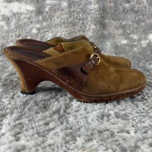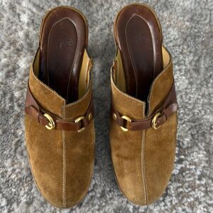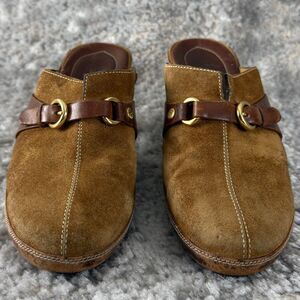 Cole Haan Womens Size 7.5G Suede Leather Brown Horsebit Heeled Clog Mule Slip On