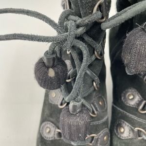 Cole Haan Womens Size 9B Black Pom Pom Wedge Sueded Leather Boots D35450
