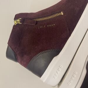 Cole Haan Women’s Suede Sneakers Grand Crosscourt Ankle Mid Top sz 8.5 B Maroon