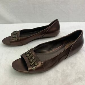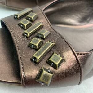Cole Haan Womens Sz 10.5 Bronze Gold Studded Flats Open Toe Slip Ons Shoes