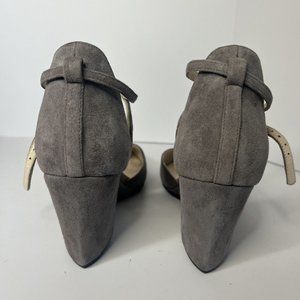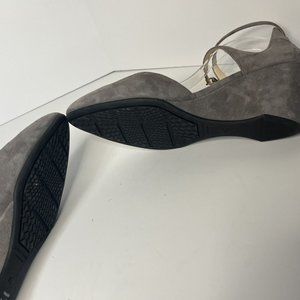 Cole Haan Women's Sz 7.5 B Lacey Suede Walnut Wedge Ankle Strap 3" Heels NWNT