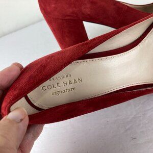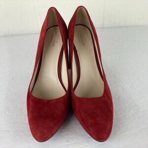 Cole Haan Womens sz 11 B Red Suede Leather Slip On Pumps Chunky Block Heel