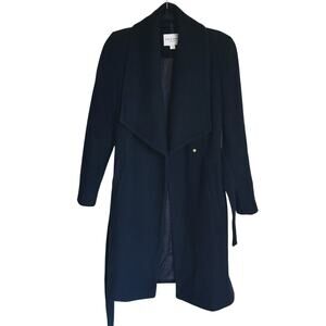 Cole Haan Wool Blend Belted Wrap Coat Black Peacoat Size 6