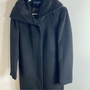 Cole Haan Wool Black Trench Dress Coat Sz 6 Black Jacket Women’s Furry
