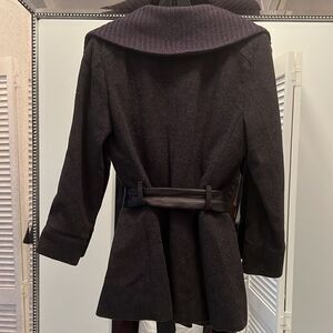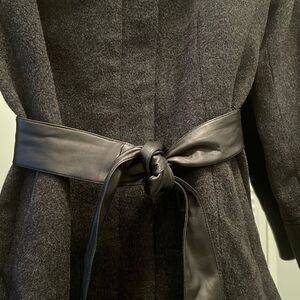 Cole Haan Wool Leather Belted Peacoat Coat w/ Oversized Collar Detail | 6