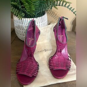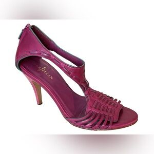Cole Haan Woven T-Strap Stiletto Sandals with Nike Air Tech in Beet - Size 6.5