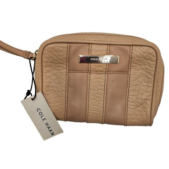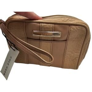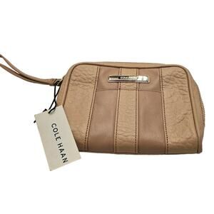 Cole Haan Wristlet Bag Zip Around Purse Leather Neutral Classic Timeless Capsule