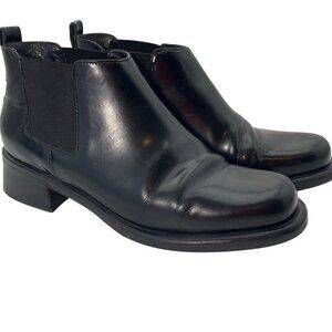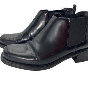 Elegant Vintage Y2K Womens Chelsea boots designed for everyday wear, offering a comfortable fit with slip-on convenience and a timeless black leather finish. Very good condition just Minor scuff on heel edge see photo number 5, Square Toe