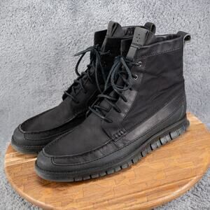 Cole Haan ZeroGrand Moc Toe Boots Mens Size 12M Black Leather Canvas Boot C12990