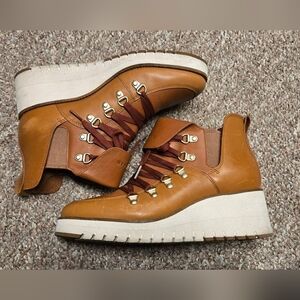 some wear on the brown leather. please see photos. otherwise, great condition!