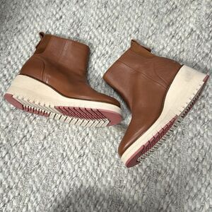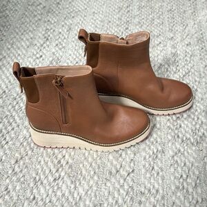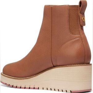 Cole Haan ZeroGrand City Brown Pebbled Leather Waterproof Wedge Bootie 7
