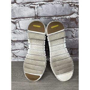 The Cole Haan Zerogrand Black Leather Lace Up Wing Oxfords for women in size 7B US/38EU are stylish and comfortable shoes perfect for travel and casual occasions. These oxfords feature a closed toe, lace-up closure, and a flat heel for all-day wear. Made of leather with a rubber outsole, these shoes provide arch support and cushioning for added comfort. The breathable design and synthetic lining make them suitable for year-round wear, while the wingtip accent adds a classic touch to the Oxford style. Ideal for those looking for a versatile and durable shoe option.