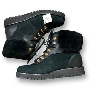 Cole Haan Zerogrand Explore Upstate Hiker Boots Black Suede Shearling Size 7.5