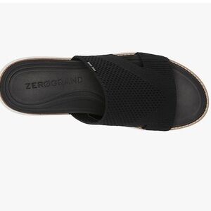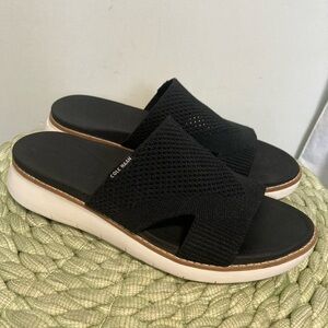 Cole Haan Zerogrand Global Stitchlite Slip On Sandal BLACK Knit/Pecan Leather
