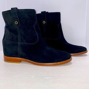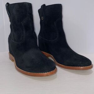 Cole Haan Zillie Black Western Suede Booties Stacked Block Heel Women’s Size 9B