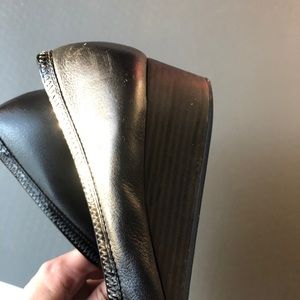 Used black leather Cole Haan leather low heel wedge, good condition as show in photos above. PS: I am mainly selling my personal used name brand clothing l, shoes and accessories. As they are used, please don’t expect them in any ideal perfect condition. Happy buying and happy selling.