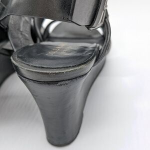 Cole Haan black leather strappy wedge 6.5. Some scuffs on the front and back along the top edge (see photos)