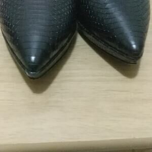 Size 9B Cole Haan snakeskin leather heels. Smooth leather. Great condition. Please see attached pictures. There's a leather wrinkle inside the left shoe, as well as a smooth dent on the toe box.