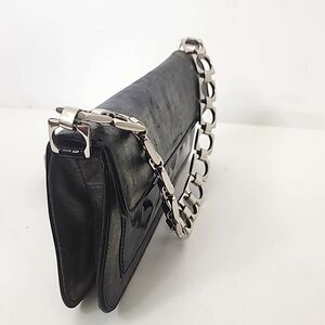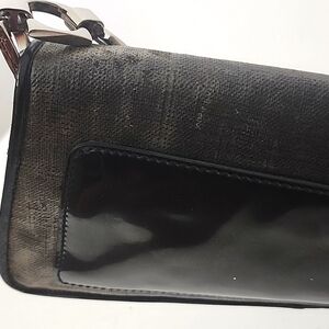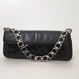 Cole Haan black weave/canvas pattern and patent leather purse with sliver chain