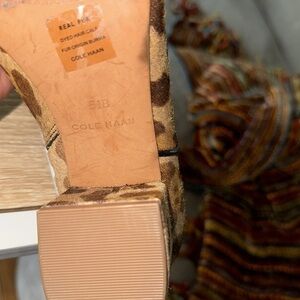 Cole Haan boots Elyse Real Fur Leopard Print Ankle 5.5 NEW leather pointed toe