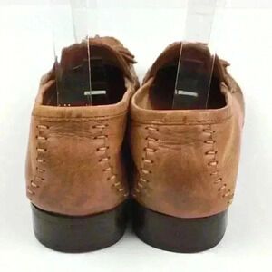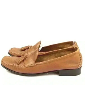 Cole Haan womens flats size 7.5 AAAA tan Italian leather tassel loafers leather sole made in Italy stacked heel