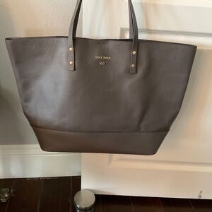 Cole Haan grey tote. Oversized 18” at widest point, 12” high, 6” deep. Only used once. 100% genuine leather.