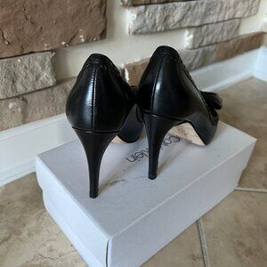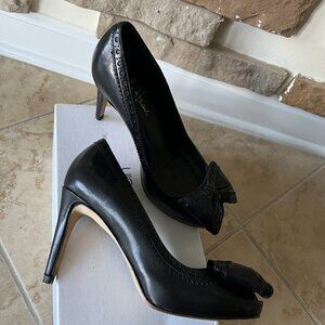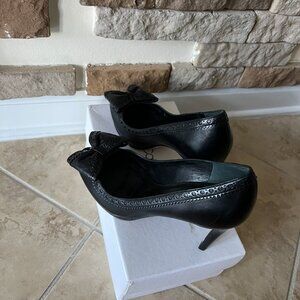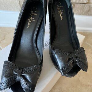 Cole Haan, high-heel woman shoes. Black with a big bow. Natural leather upper and soil. Size 5.5. Worn twice, perfect condition. Soil stained naturally after the first use :-(.