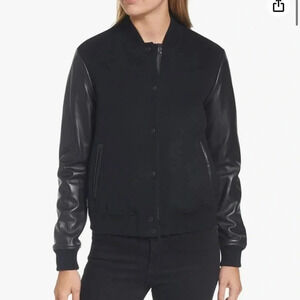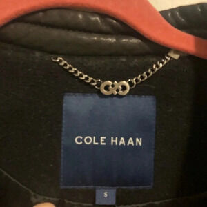 Leather sleeveless and trim - wool jacket. Cole Haan. Great condition.