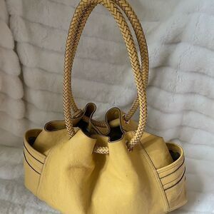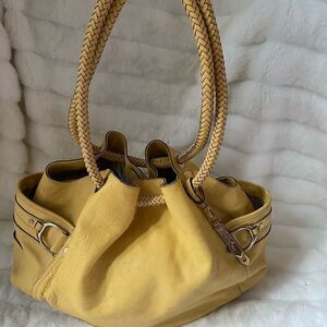 Cole Haan leather yellow mustard large shoulder bag braided straps.