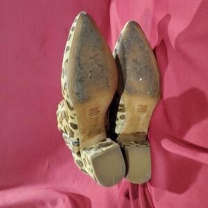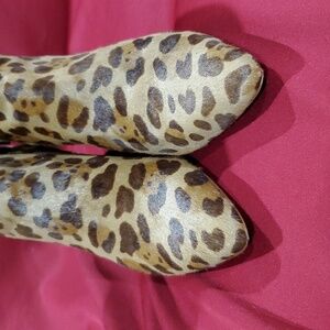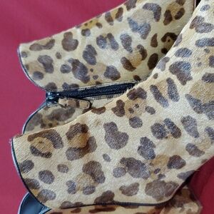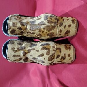 great used condition small rub on inside of one heel shown in photos chunky heel Chelsea boot hairy calf skin animal leopard print shoes size 9B