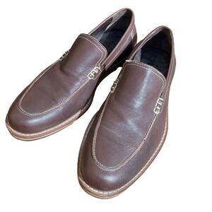 Cole Haan dressy loafers men's size 9 mocassini brown leather Made in India wood heel