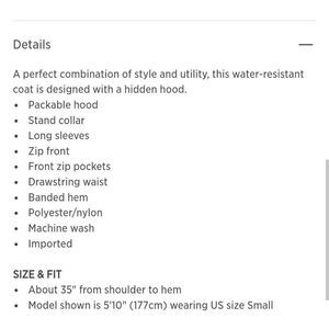 NWT Cole Haan packable Raincoat in Brown