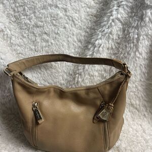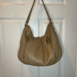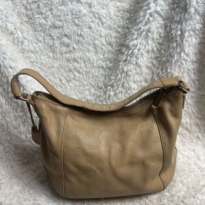 Cole Haan pebble leather tan medium shoulder bag with gold tone hardwares