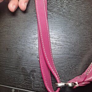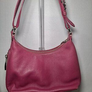 Cole Haan pink magenta leather hobo bag with a front buckle pocket