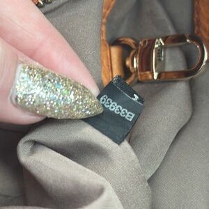 Zip top closure opens to tan fabric interior with 2 slip pockets, 1 zip pocket and 1 key hook