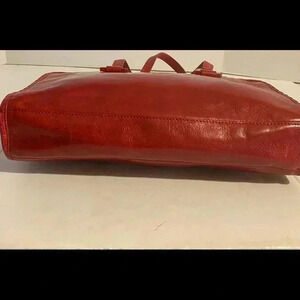 Authentic cole haan red leather handle bag main compartment 3 pockets at interior wall 1 zip red fabric lining logo at front zip closure at top minor scratches please check all photos hight 8” width 12” depth 2” Strap drop 7” Bag dimensions are based on approximate measurements. Before placing an order please take a moment to view all photos using zoom feature for a closer look