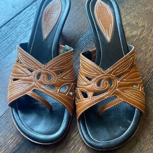 Cole Haan resort shoes kitten heel 2 in brown leather sandal size 6.5 womens sli